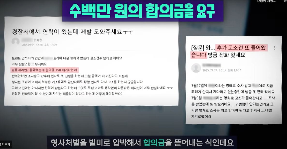 무인 점포처럼 이 토렌트 역시 건당 200만원 내외의 합의금 장사로 영화나 드라마 매출보다 합의금이 더 많이 나오는 경우도 있다고 합니다. 형사처벌을 빌미로 합의금을 뜯어내는 수법입니다.