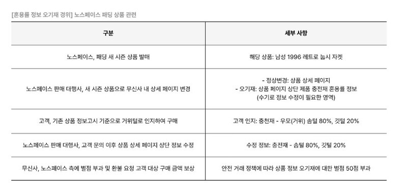 노스페이스 패딩 혼용율 사기