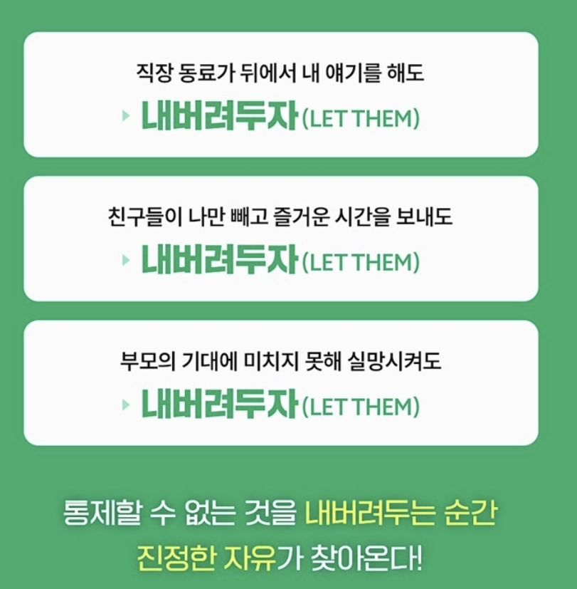 작가는 이처럼 다른 사람에 신경 쓰지 말고 내 삶에 집중 해야한다고 합니다.