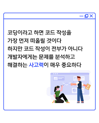 그 뿐만 아니라 이 문제를 코딩으로 해결할 수 있는지, 그렇다면 어느정도 리소스가 필요할지에 대한 감이 필요합니다. 이를 위해서는 컴퓨터나 소프트웨어에 대한 지식 역시 필요합니다.
