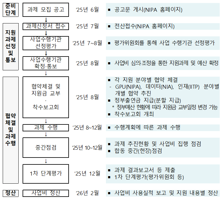 현재 과학기술정보통신부가 주관하고 정보통신산업진흥원(NIPA) 등이 집행을 맡은 이 사업은 2027년까지 국내 유수의 AI 기업·연구기관이 참여하는 정예 컨소시엄 5개 내외를 선정·지원하게 됩니다. 이들은 GPU·데이터·인재 등 핵심 자원을 국가로부터 집중적으로 제공받으며 글로벌 최신 AI 모델 대비 95% 이상의 성능을 갖춘 독자 모델 개발을 목표로 하고 25년 6월부터 진행했는데요. 단순히 기존 외산 모델을 파인튜닝하거나 수정하는 형태는 인정되지 않으며, 모델 구조부터 학습까지 완전한 국산화를 요구한다는 것이 특징입니다.