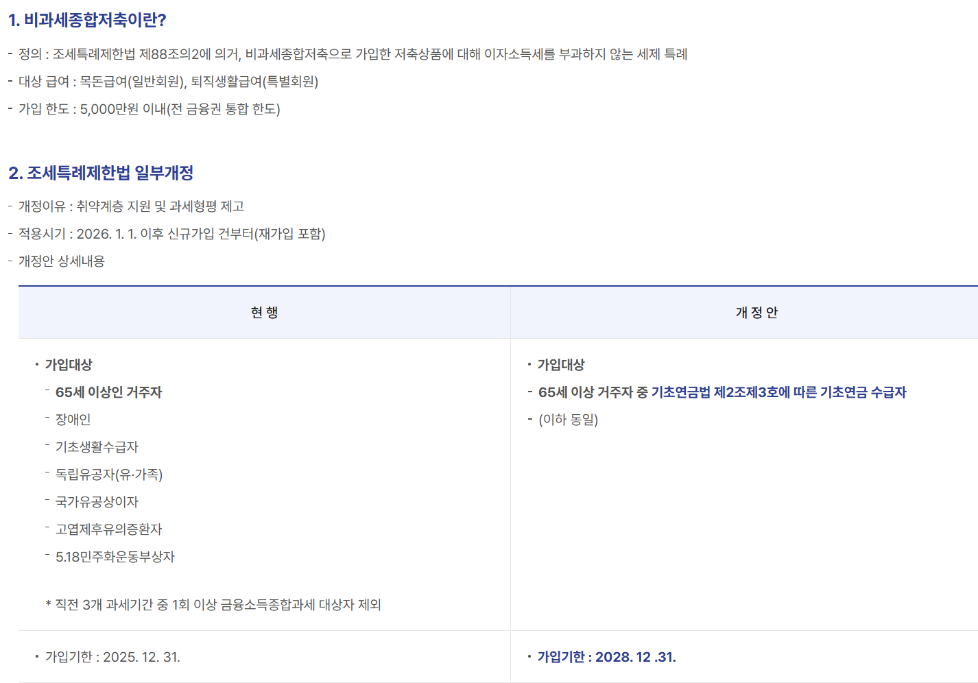 특히 이번 개편에도 기존 가입자는 가입 조건이 바뀐 이후에도 2028년 말까지 비과세 특례를 계속 적용받을 수 있습니다.