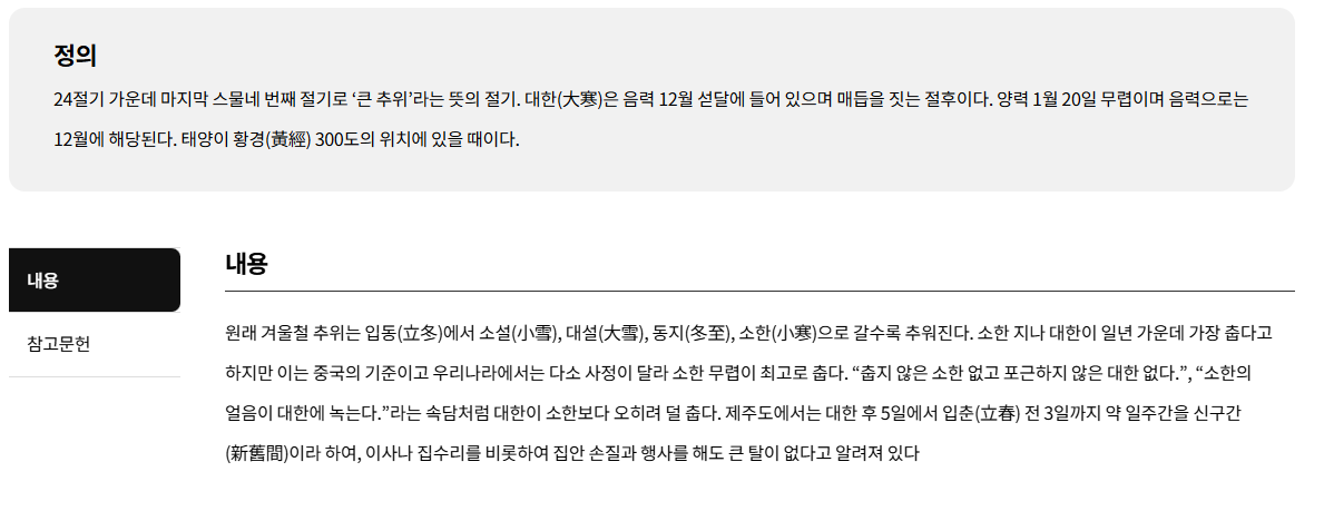 오늘은 24절기 중에서 대한인데요.