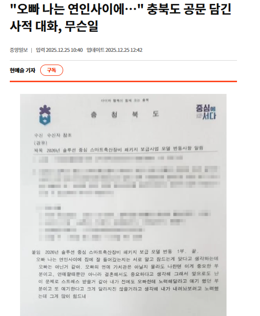 이 사건은 작년 12월에 충북도청에서 발생한 오빠 나는 연인사이에 공문하고 비슷한 결인 것 같은데요.