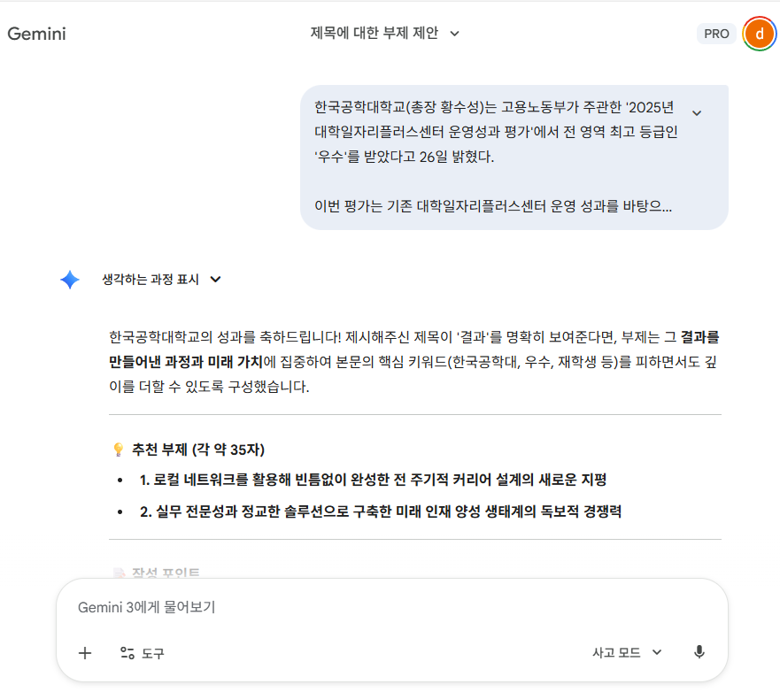 아마도 본문을 넣고 ChatGPT나 Gemini에게 아래처럼 제목에 대한 부제를 제안하는 형태로 사용하지 않았나 싶습니다.
