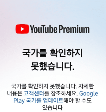 유튜브 프리미엄을 잘 우회해서 사용하다가 갑자기 국가를 확인하지 못했습니다라는 에러 메시지가 나왔는데요.