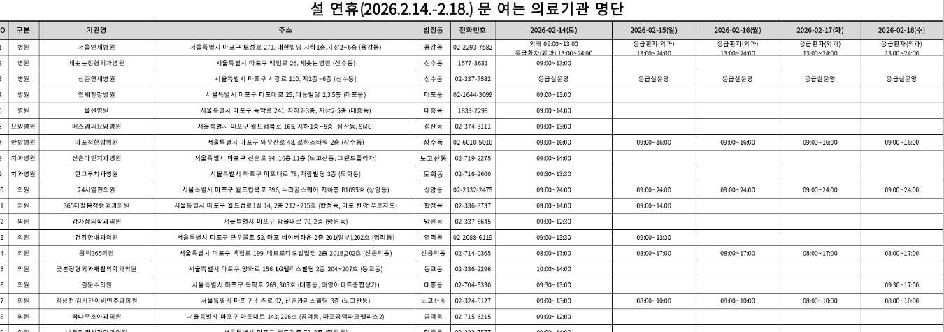 24시 열린의원, 공덕 365의원 등은 설 연휴에 정상적으로 영업한다고 합니다.