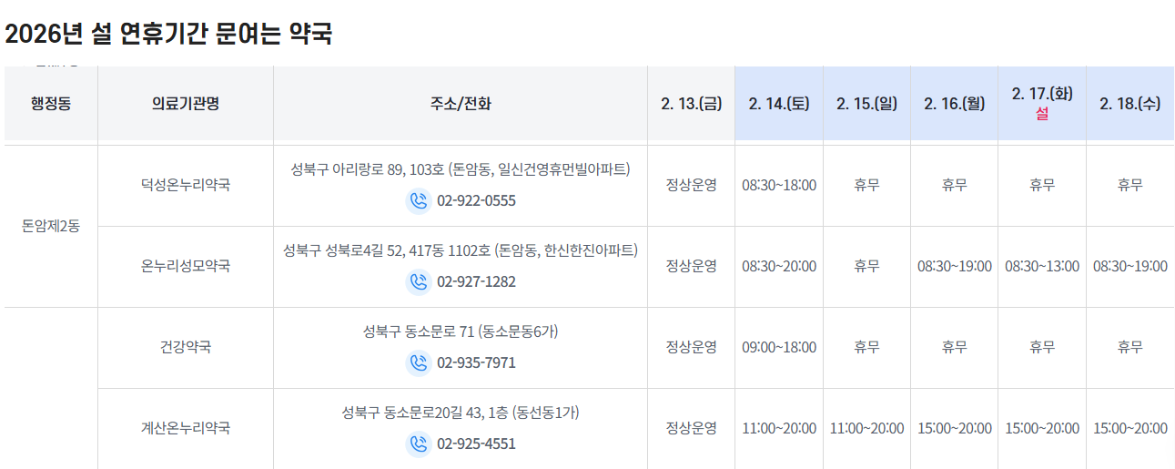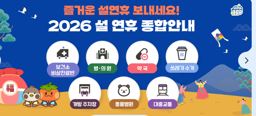 각 지자체 홈페이지를 가면 설연휴 약국과 병원을 안내하고 있습니다.
