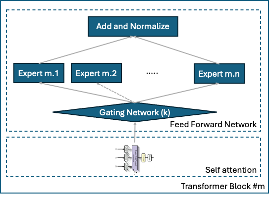 즉 각 요청별로 전체 파라미터를 활성화하여(통과시켜) 문장을 생성하는 기존의 방식에 대비해 일부의 파라미터만을 활성화하여 계산의 효율성은 높혀 빠른 응답이 가능하도록 했지만 적절한 파라미터 선택과정을 통해 생성된 문장의 질은 유지하는 특징을 갖고 있습니다. DeepSeek을 비롯하여 GPT-4, KIMI-2, Qwen3 등 최신 LLM 모델들이 모두 사용하고 있는 증명된 아키텍쳐입니다.