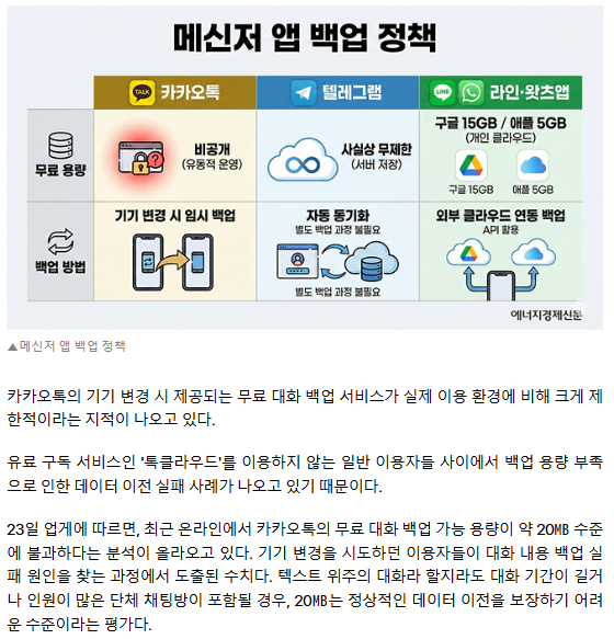 최근 카카오톡은 카카오톡 서랍을 판매하기 위해서 카카오톡 백업 용량을 50MB로 줄였는데요.