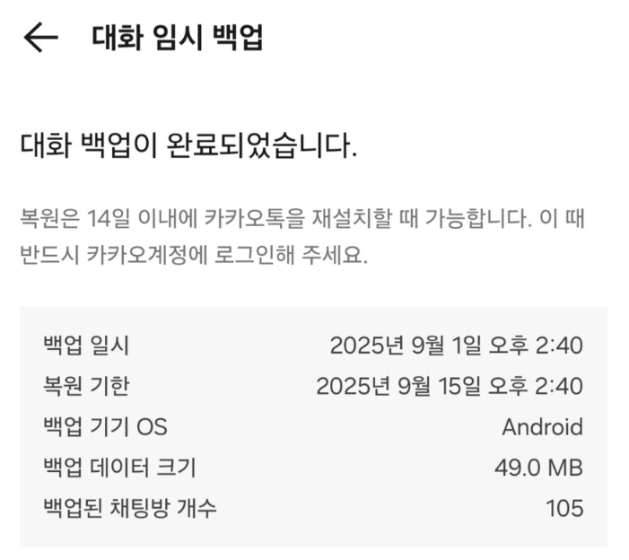 이처럼 갤럭시에서 카카오톡 백업을 자동과 수동으로 진행할 수 있는데요.