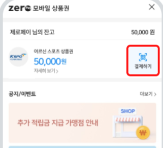 어르신 스포츠 상품권 사용하기