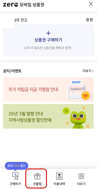 메뉴 하단을 보면 선물함 아이콘이 있습니다.