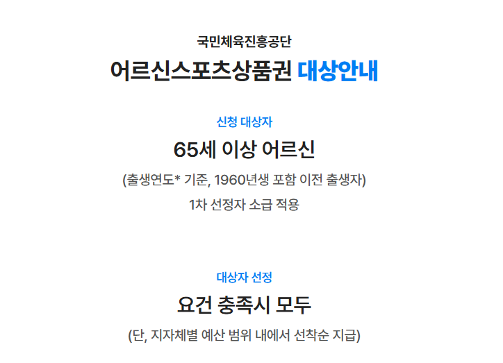 어르신 스포츠 상품권은 문화체육관광부와 국민체육진흥공단(KSPO)에서 만 65세 이상 어르신들의 건강 증진을 위해 스포츠 시설 이용료 10만 원을 지원하는 복지 사업입니다