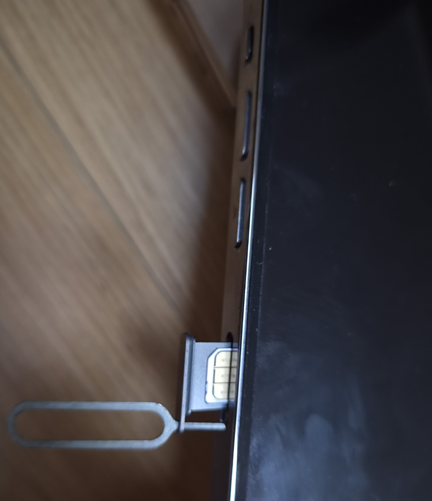 구멍에 유심핀을 넣으면 유심 트레이가 나오면서 안에 유심이 있는데요.