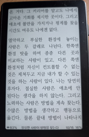우리 주위에서 환경탓, 남탓만 하면서 허송세월을 보내는 사람이 많은데 깊은 울림이 있었습니다.