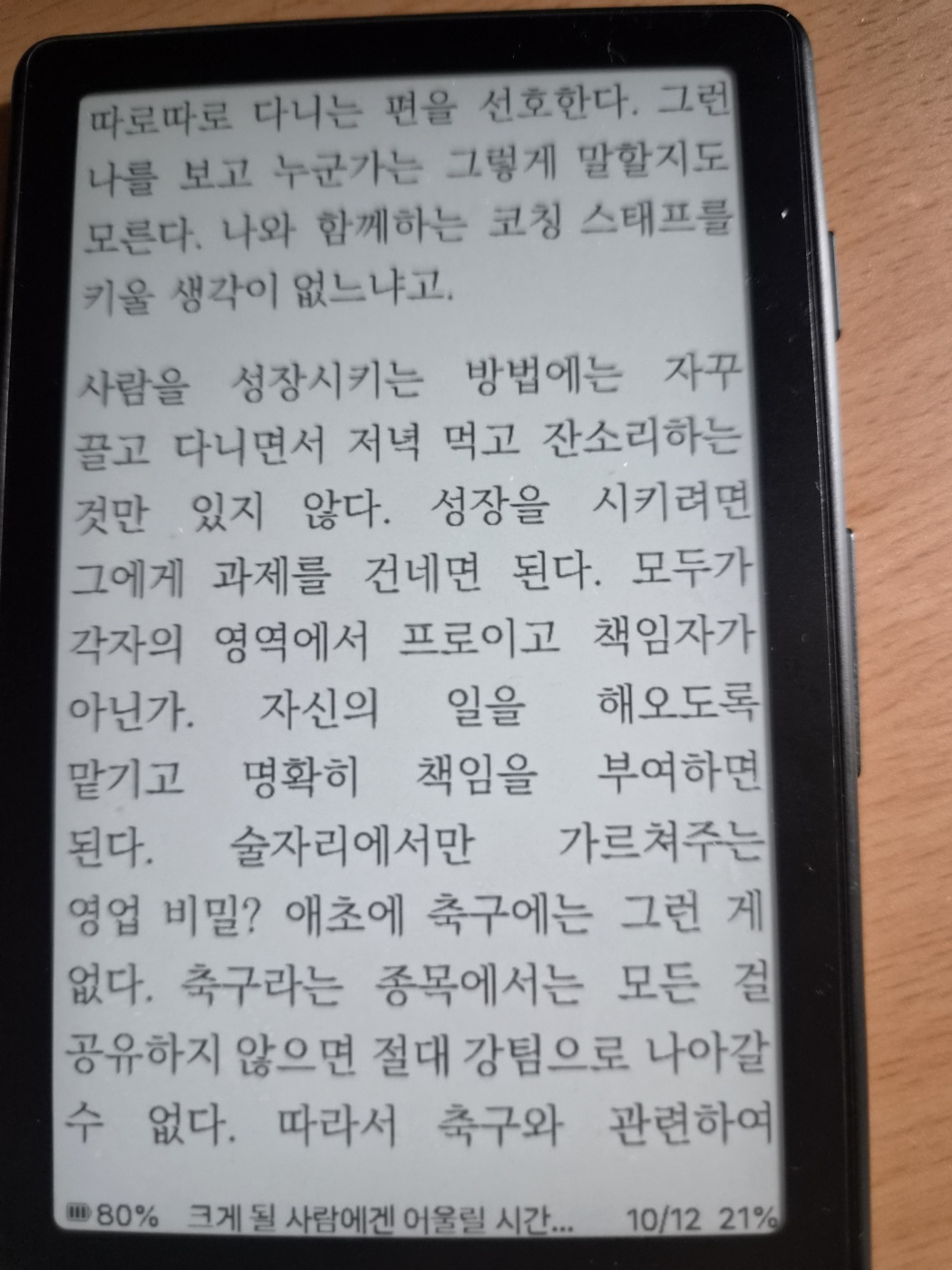 그리고 무엇보다 글 속에서 치열하지만 따뜻함이 느껴져서 참 좋았습니다. 선수들에 대한 애정이 느껴졌습니다. 많은 감독을 만나봤지만 선수를 그저 승리를 위한 도구로만 생각하는 감독도 있는데, 선수들과 같이 성장해야 한다는 철학을 가진 감독은 정말 오랜만에 보는 것 같습니다.