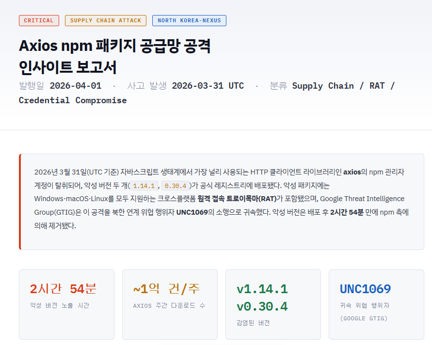 또한 최근 발생한 Axios npm 해킹처럼 해킹이 더 자주 발생하는 상황에서 처벌이 강해졌다는 것은 기업들이 보안에 더 주의해야한다고 할 수 있습니다.